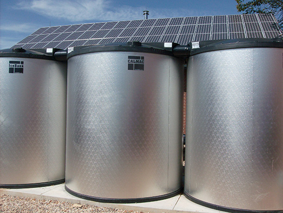 Thermal energy storage stores ice to cool people in buildings. It’s a novel approach to conventional air-conditioning, akin to making ice before the party.